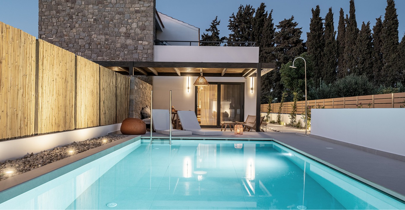 Rastoni Villas will undoubtedly steal your heart with their amazing swimming pools that cover an area of 28 square metres.